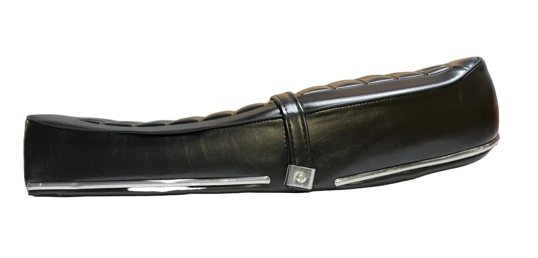 Upgrade or restore your classic Honda CB750K with this Duck Tail Style Seat Assembly — quality constructed and designed for a direct fit on 1969 and 1970 CB750K model. This complete seat comes with the strap, chrome trim, bottom rubbers, and all the components you need for a quick and painless install. Back of the seat does not say “Honda,” but the fit and finish are tailored for classic CB750K bikes. This seat replaces OEM #77200‑300-020.