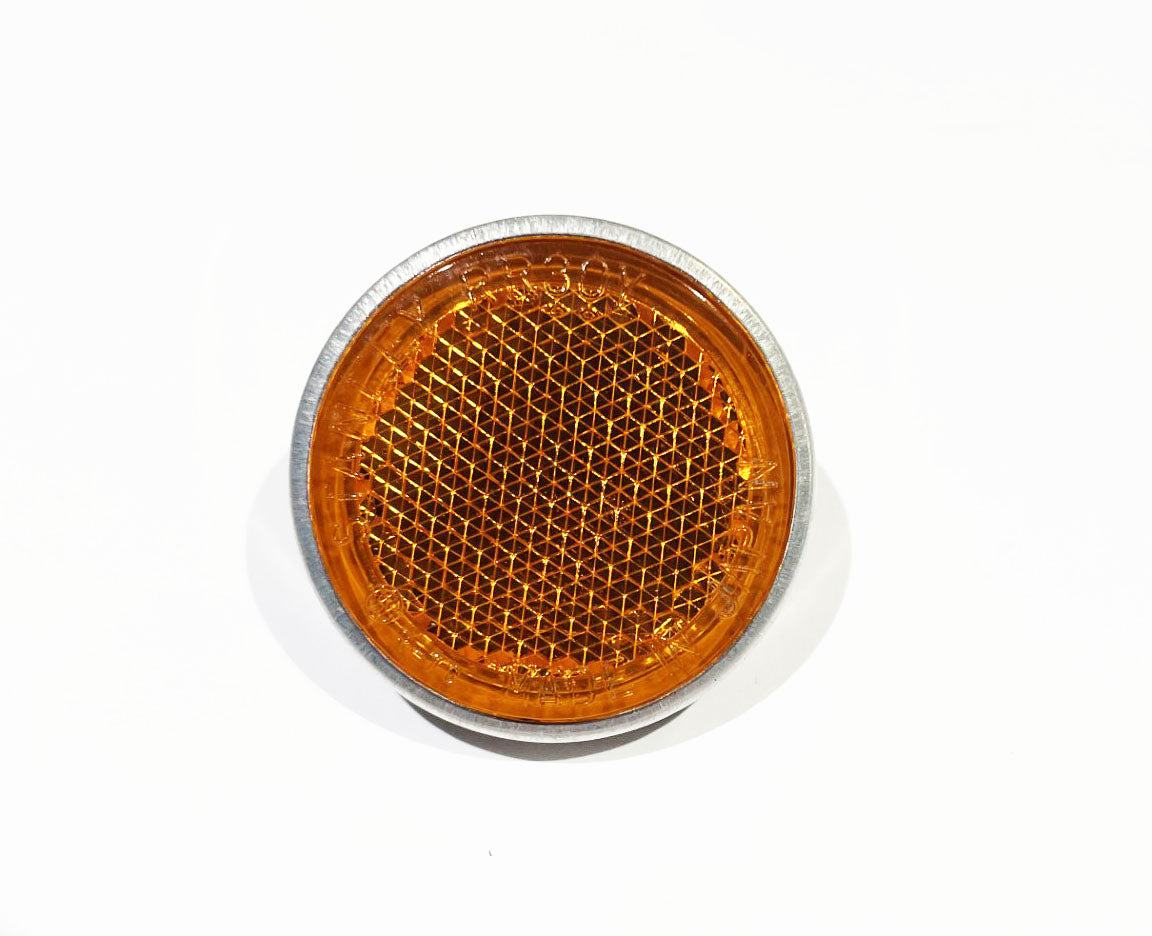 Replace a damaged or missing front fork reflector on your vintage Honda motorcycle with this small-diameter amber front reflector. This replacement part is designed to replace Honda OEM 33741-315-000 and also supersedes 33741-286-670 and 33741-045-671, making it a strong choice for period-correct restoration, safety, and everyday riding.